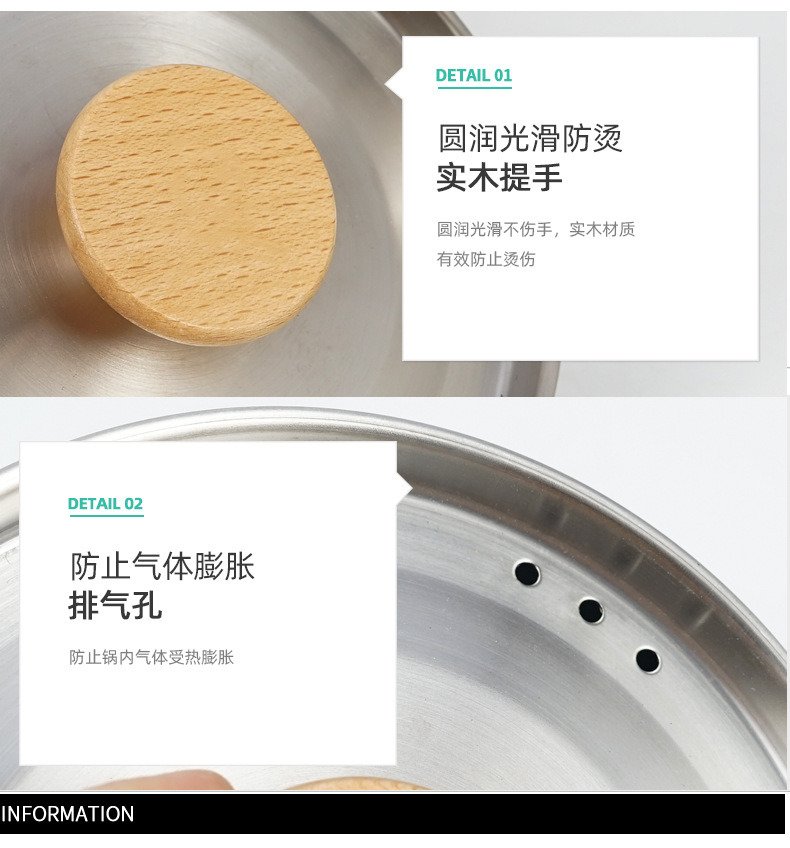 Material: pot body - 304 stainless steel / accessories - 201 stainless steel / pot lid handle - beech wood